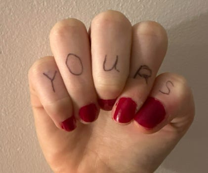 P.S. The reason that the title is written on my fingers in the picture is because today during a free hour at school, I wrote four things on my fingers. These four things are what my mom says are perfect for staying happy.😉